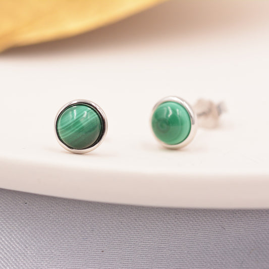 Natural Malachite Stone Stud Earrings in Sterling Silver - 5mm Genuine Malachite Stud Earrings - Semi Precious Gemstone