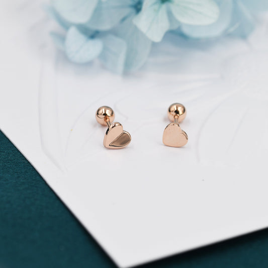 Small Pair of Folded Heart Stud Earrings in Sterling Silver, Rose Gold, Silver, Screw Back Earrings - helix, cartilage, conch, tragus