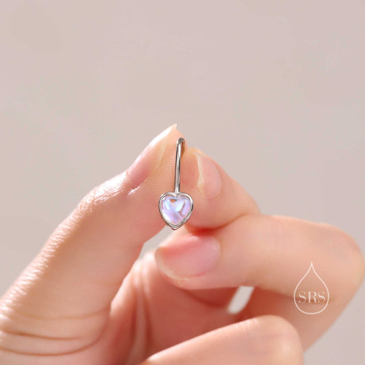Moonstone Heart Drop Hook Earrings in Sterling Silver, Delicate Heart Earrings, Moonstone Heart Earrings