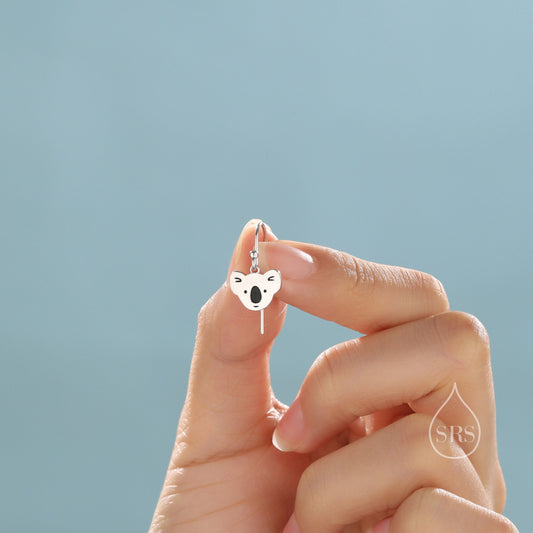 Koala Bear Drop Hook Earrings in Sterling Silver, Silver or Gold or Rose Gold, Koala Dangle Earrings, Koala Drop Earrings