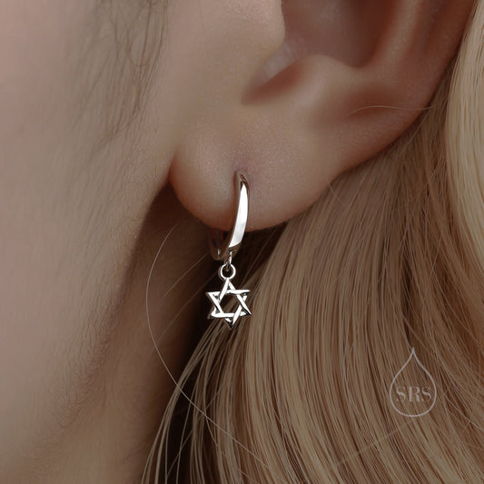 Pair of Star of David Huggie Hoop Earrings in Sterling Silver, Silver, Gold or Rose Gold, Tiny Star Hoops