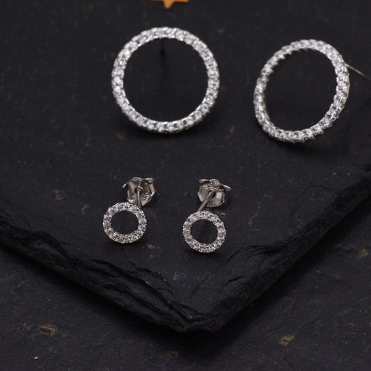 Sterling Silver Open Circle Stud Earrings with CZ Crystals, Symbol for Eternity Infinity and Possibility, Modern Contemporary Design