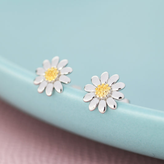 Sweet Daisy Stud Earrings in Sterling Silver, Silver and 18ct Gold, Flower Stud Earrings, Nature Inspired Floral and Plant Earrings