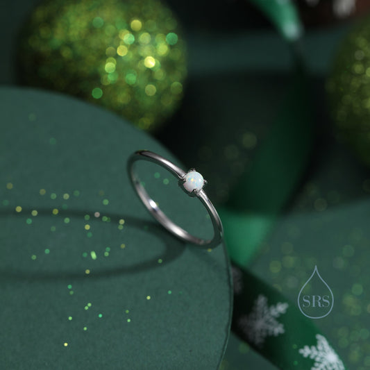 Tiny Fire Opal Ring in Sterling Silver, US 5 - 8, 3mm Opal Ring, Prong Set, Lab Opal Stone Ring, White Opal Ring, Delicate Stacking Ring,