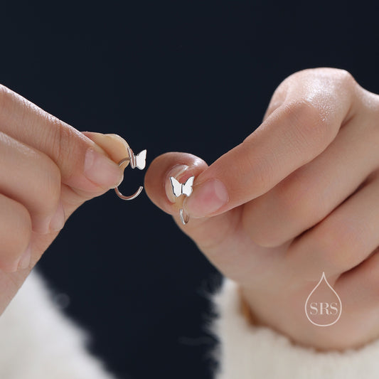Sterling Silver Butterfly Huggie Hoops, Butterfly Open Hoop Earrings, Dainty Butterfly C Shape Open Threader Earrings, Butterfly Earrings