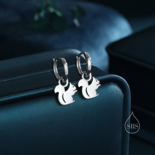 Sterling Silver Cute Squirrel Dangle Huggie Hoops, Detachable Squirrel Hoop Earrings, Dainty Dangle Earrings, Squirrel Earrings
