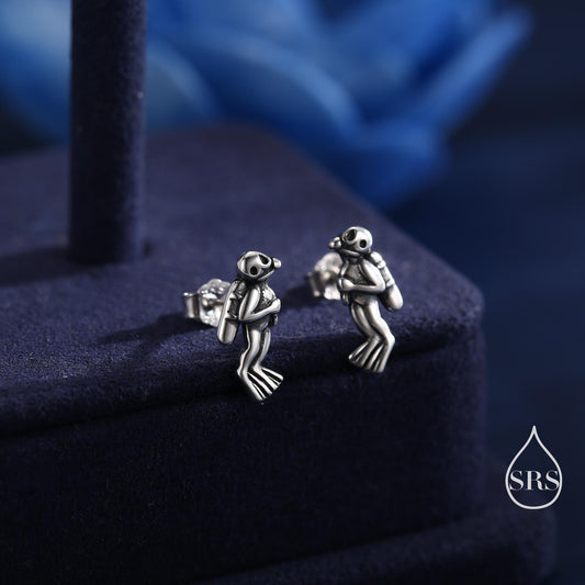 Tiny Scuba Diver Stud Earrings in Sterling Silver, Silver Gold or Rose Gold, Diving Jewellery, Scuba Earrings, Ocean Earrings