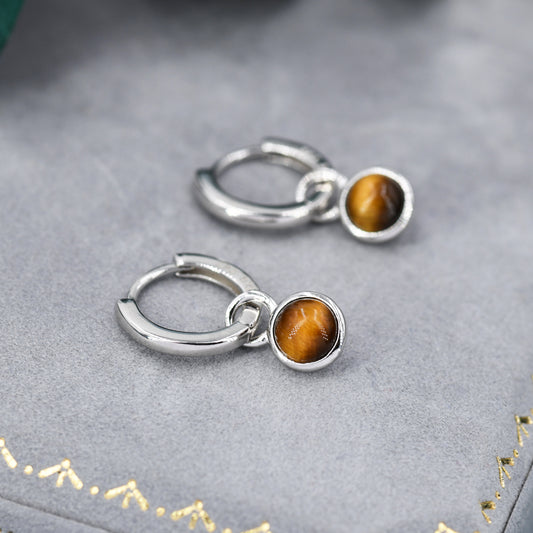 Sterling Silver Dangling Tiger's Eye Hoop Earrings, Detachable Tiger's Eye Coin Dangle Hoop Earrings, Interchangeable