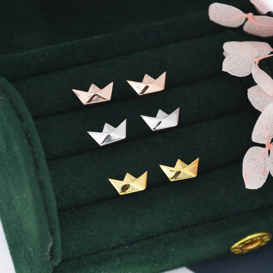 Origami Paper Boat Stud Earrings in Sterling Silver, Silver, Gold or Rose Gold, Boat Earrings, Origami Earrings
