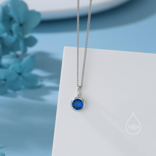 Sapphire Blue CZ Bubble Pendant Necklace in Sterling Silver, Silver or Gold or Rose Gold, 1 Ct Zircon Bezel Necklace, September Birthstone