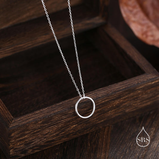 Minimal Skinny Circle Pendant Necklace in Sterling Silver, Silver or Gold or Rose Gold, Delicate Circle Geometric Necklace