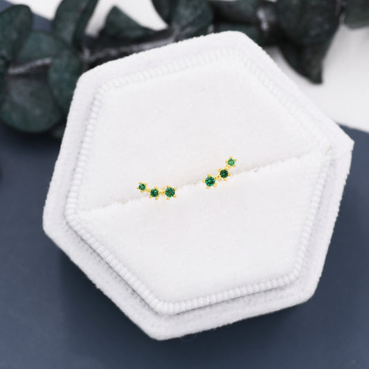 Extra Tiny Emerald Green CZ Trio Stud Earrings in Sterling Silver, Silver or Gold, Geometric Tiny Three Star CZ Earrings, Stacking Earrings