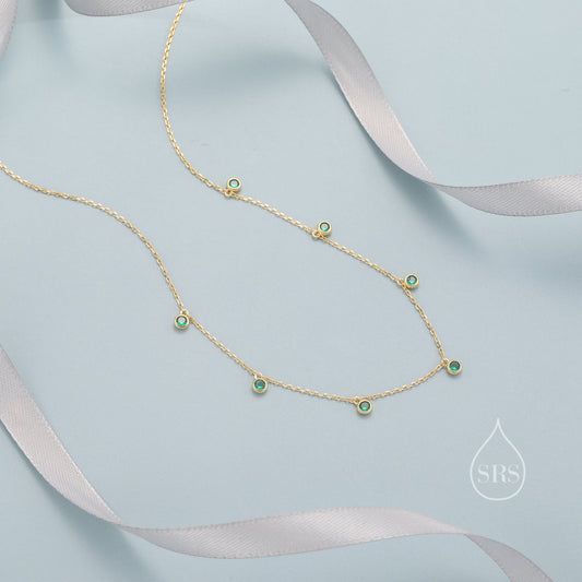 Emerald Green CZ Dangle Necklace in Sterling Silver, Silver or Gold or Rose Gold, Satellite Crystal Necklace, Solid Silver Motif Necklace