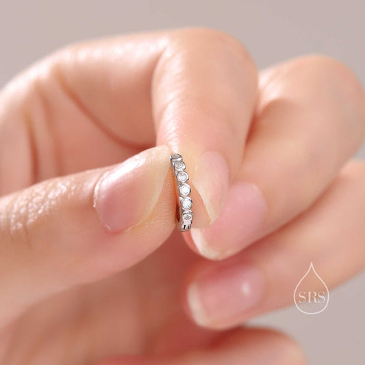 Delicate CZ Huggie Hoop Earrings in Sterling Silver, 8mm Inner Diameter, Silver or Gold, Geometric Hoop Earrings
