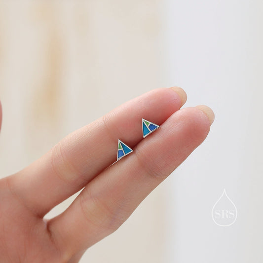 Enamel Triangle Stud Earrings in Sterling Silver, Hand Painted Enamel Triangle Earrings, Triangle Stud