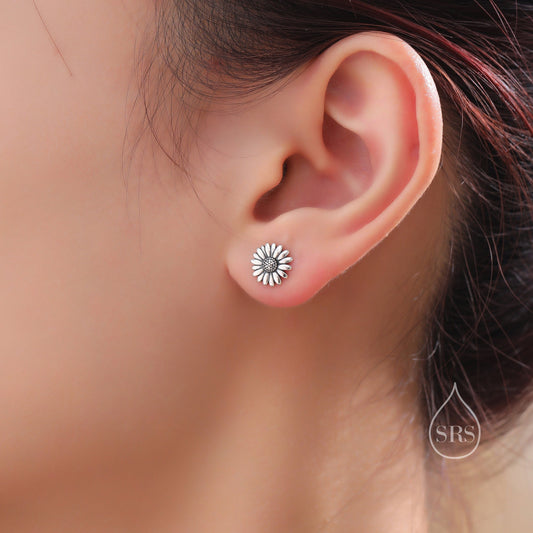 Daisy Flower Stud Earrings in Sterling Silver, Two Finished Available Silver Daisy Earrings, Silver Daisy Blossom Earrings, Oxidised Silver
