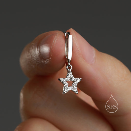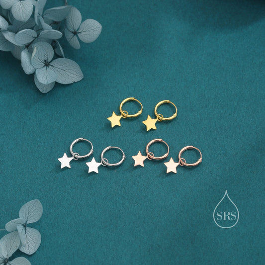 CZ Star Huggie Hoop Earrings in Sterling Silver, Silver, Gold or Rose Gold, Tiny Star Hoops