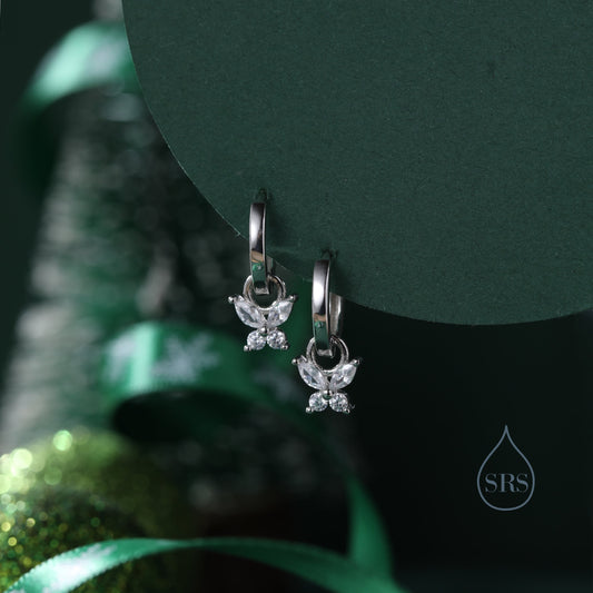 Sterling Silver Butterfly CZ Huggie Hoops, Detachable Butterfly Hoop Earrings, Dainty Butterfly Dangle Earrings, CZ Butterfly Earrings