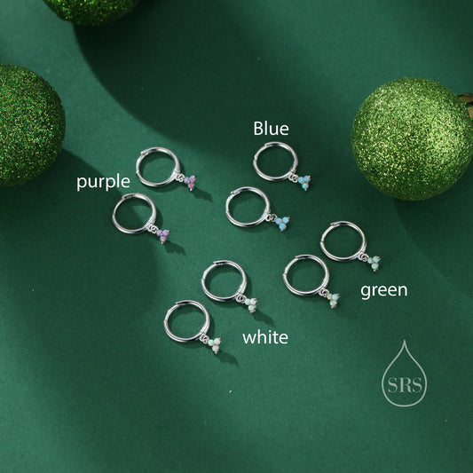 Opal Trio Droplet Tiny Huggie Hoop Earrings in Sterling Silver, Blue Opal or White Opal or Purple Opal or Green Opal, Three Opal Earrings