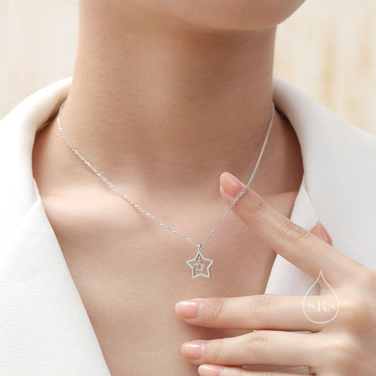 Moonstone Star Pendant Necklace in Sterling Silver, Silver or Gold, Open Star Halo Necklace with Simulated Moonstone, Lab Moonstone Star
