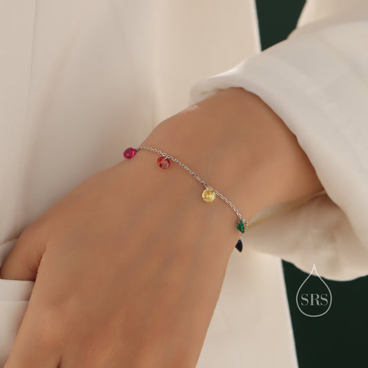 Rainbow Colour CZ Bracelet in Sterling Silver, Silver or Gold, Silver Dangle CZ Bracelet, CZ Cluster Bracelet, Crystal Charm Bracelet