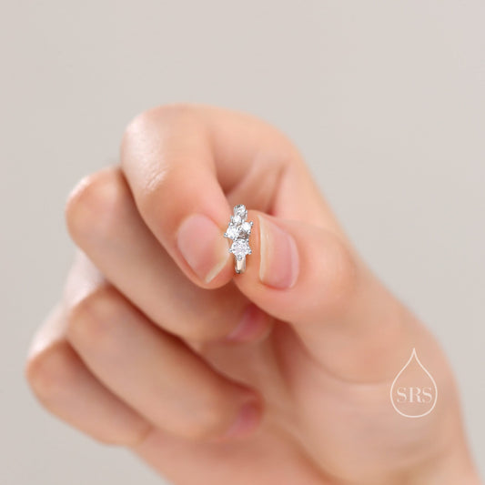 Star Constellation CZ Huggie Hoop in Sterling Silver, Silver or Gold or Rose Gold, 8mm Inner Diameter, Stacking Earrings, CZ Cluster Hoops,