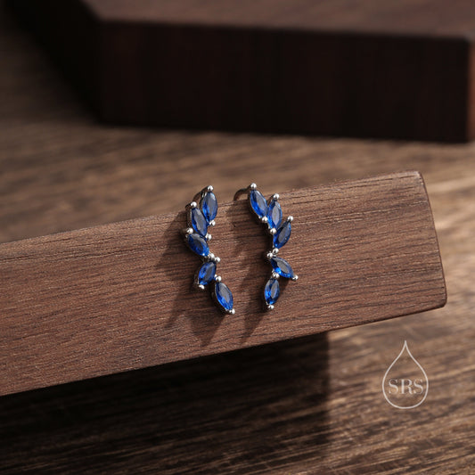 Sapphire Blue CZ Cluster Crawler Earrings in Sterling Silver, Silver or Gold, Blue CZ Marquise Ear Crawlers, CZ Cluster Earrings