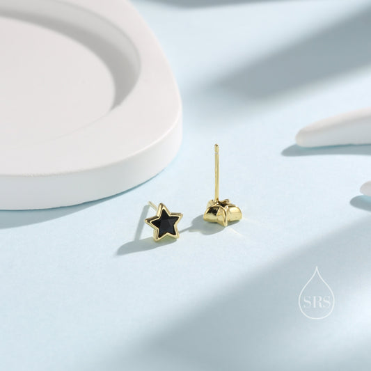 Small CZ Star Stud Earrings in Sterling Silver, Silver or Gold, 5mm Sparkly Crystal Star Earrings, Stacking Earrings, Green Star, Blue Star