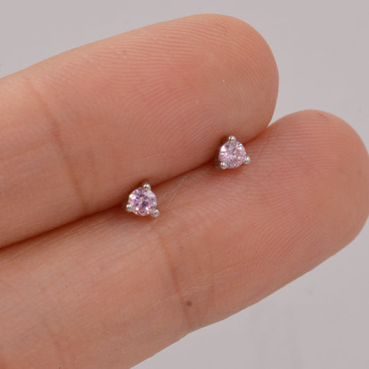 Pink Crystal Stud Earrings in Sterling Silver, 3mm Three Prong, Tiny Crystal Stud