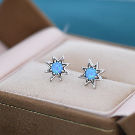 Starburst Blue Opal Stud Earrings in Sterling Silver, Silver or Gold, Star Opal Earrings, Stacking Earrings