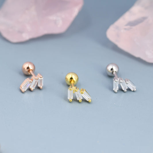 Triple Baguette Screw back Earrings in Sterling Silver, Silver, Gold or Rose Gold over Sterling Silver, Baguette Cluster Screwback Earrings