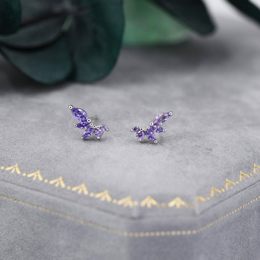 Amethyst Purple CZ Marquise Cluster Stud Earrings in Sterling Silver, Silver or Gold, Marquise Earrings, CZ Wing Earrings, Mini Crawler