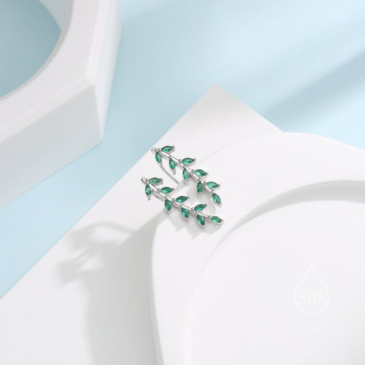Emerald Green CZ Leaf Crawler Earrings in Sterling Silver, Silver, Gold or Rose Gold, Olive Branch Climber Earrings, Nature Inspired Earring