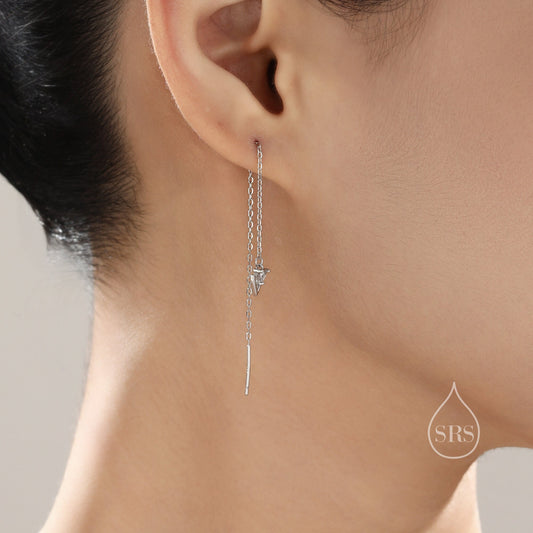 Sterling Silver Double Triangle Threader Earrings, Double Triangle Ear Threaders, Dainty Dangle Arrow Head Earrings, Geometric Arrowhead