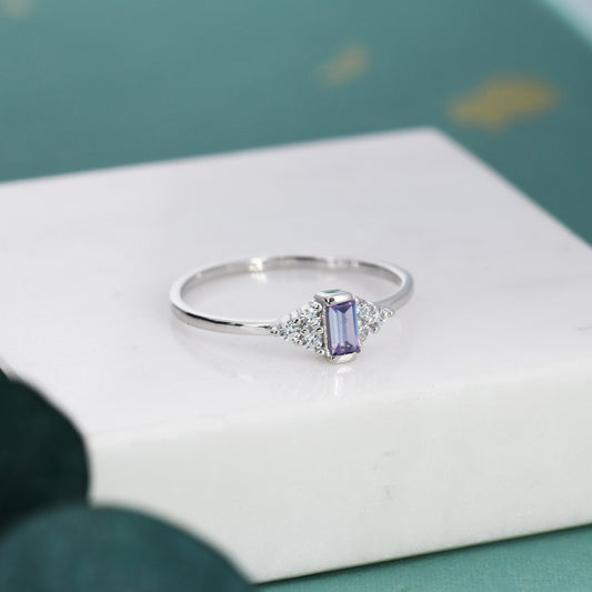 Vintage Inspired Lilac Purple CZ Ring in Sterling Silver, Baguette Ring, Silver or Gold, Delicate Sapphire Ring, Size US 5 - 8