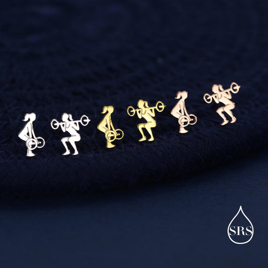 Strong Girl Barbell Stud Earrings in Sterling Silver, Deadlift & Squat Stud Earrings, Powerlifter Earrings