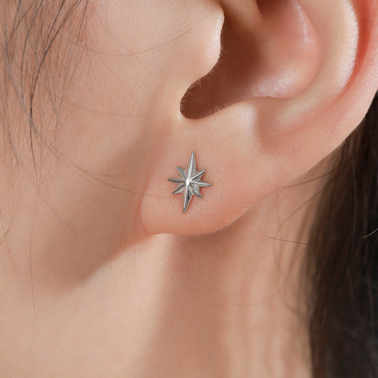 Tiny Starburst Stud Earrings in Sterling Silver, Delicate North Star Earrings, Silver, Gold or Rose Gold, Star Earrings, Celestial Earrings