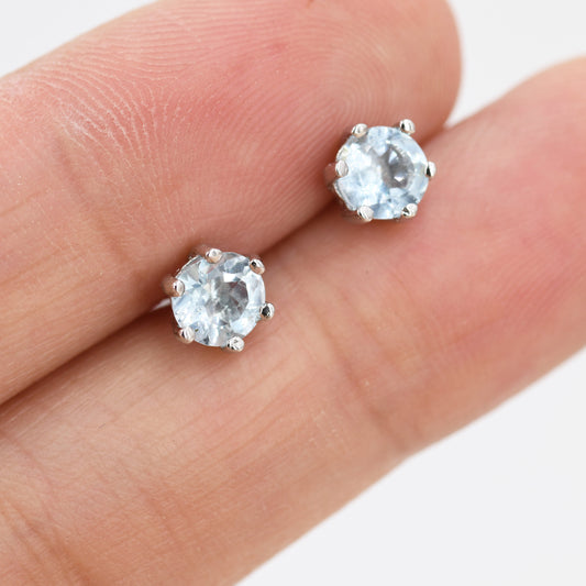 Genuine Sky Blue Blue Topaz Stud Earrings in Sterling Silver, Silver or Gold, Trillion Cut Natural Blue Topaz Earrings, Double Pronged