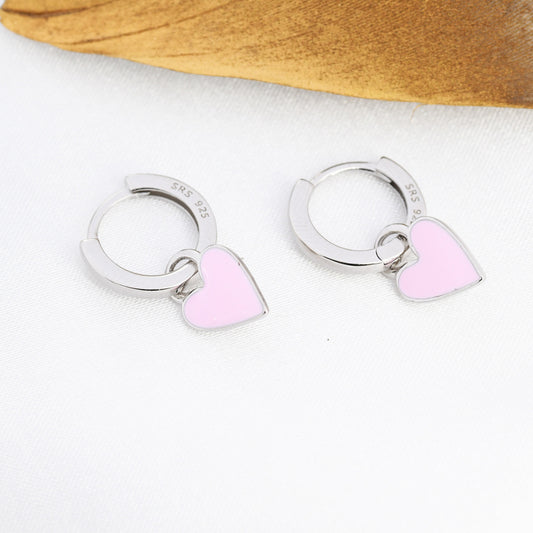 Pink Enamel Heart Earrings in Sterling Silver, Detachable Heart Charm Dangle Hoop Earrings, Interchangeable