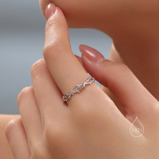 Intertwining Thorn Ring in Sterling Silver, Adjustable Size, Rose Thorn Ring, Silver Thorn Ring