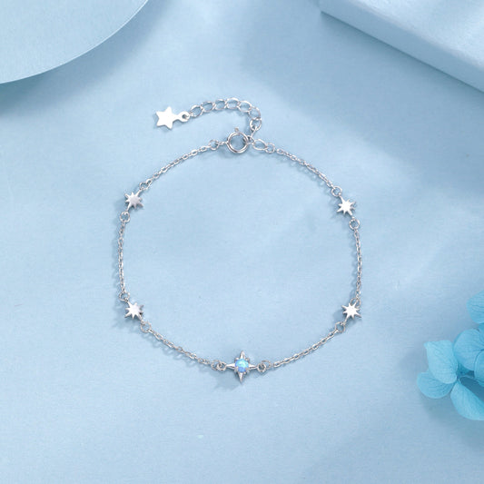 Opal Starburst Bracelet in Sterling Silver, Silver or Gold, Dainty Star Motif Bracelet, Starburst Bracelet