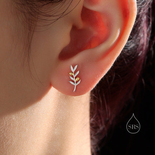 Olive Leaf Stud Earrings in Sterling Silver, Silver, Olive Branch Earrings, Nature Inspired Leaf Earrings