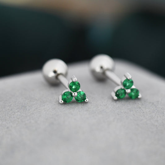 Tiny Three Emerald Green CZ Screw Back Earrings in Sterling Silver, Green CZ Trinity Screwback, CZ Trio Earrings