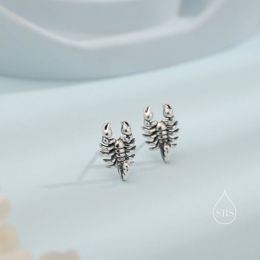 Tiny Scorpion Stud Earrings in Sterling Silver, Oxidised Finish, Scorpion Earrings