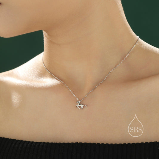 Tiny Unicorn Horse Necklace in Sterling Silver, Adjustable 16'' - 18''; - Cute Quirky and Fun Jewellery, Unicorn Horse Pendant Necklace