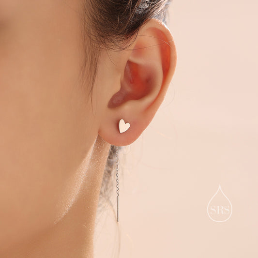 Tiny Heart Threader Earrings in Sterling Silver, Silver or Gold or Rose Gold, Heart Ear Threaders, Heart Threaders, Chain Earrings
