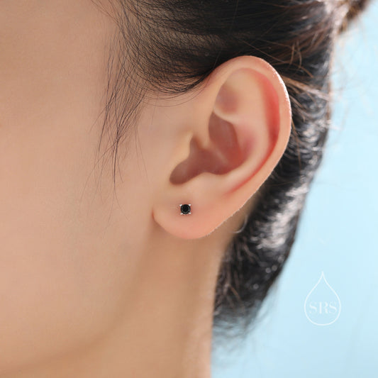 Tiny Black CZ Screw Back Earrings in Sterling Silver, 3mm or 4mm or 5mm CZ, Stacking Earrings, Black CZ Barbell Earrings, Helix Earrings