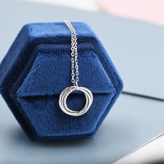 Sterling SilverThree Interlocking Circles Pendant Necklace with Dotted Details, Three Entwined Rings for 30s, 30th Infinity Necklace