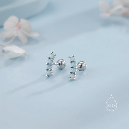 Tiny Opal Curved Bar Screw Back Earrings in Sterling Silver, Silver or Gold, White Opal or Blue Opal Screw Back Earrings, Fire Opal