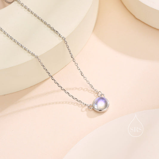 Sterling Silver Moonstone Dainty Coin Pendant Necklace - Delicate Lab Moonstone Coin Necklace